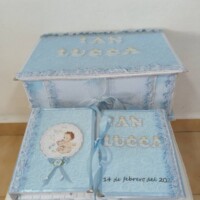 🎁 Incluye caja decorativa en azul celeste con el nombre del bebé grabado en grande, espacio para guardar recuerdos y para colocar una ampliación de foto.