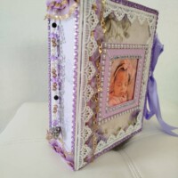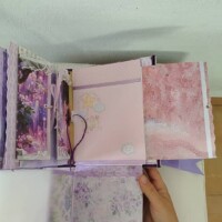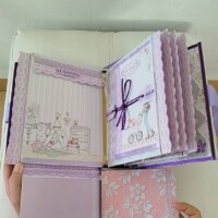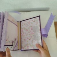Este álbum mediano está tejido con dulzura y ternura en cada detalle. Sus tonos entre rosado y morado le dan un aire de ensueño, perfecto para resguardar los primeros recuerdos de la vida de un bebé.