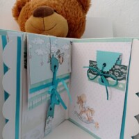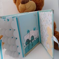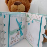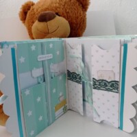 En un rincón sereno, nació este álbum mediano, decorado con tonos suaves de blanco y verde agua, como si cada página estuviera bañada por la luz de un riachuelo tranquilo. Sus hojas abiertas parecen olas que guardan secretos y primeras sonrisas.