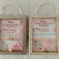 Su diseño combina la ternura con la elegancia: un marco de madera con mica protectora, que puede resguardar no solo las palabras, sino también una fotografía especial o un pequeño muñeco decorativo. En el centro, brilla con protagonismo el nombre del bebé, como un título que anuncia el comienzo de su propia historia.