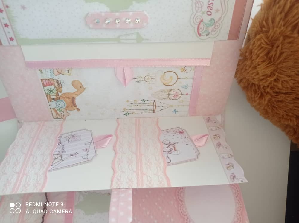 ✨ Una sección especial con cajitas diminutas guarda tesoros irrepetibles: el ombliguito, la manillita o incluso la primera ecografía, como pequeñas huellas del comienzo de la vida.