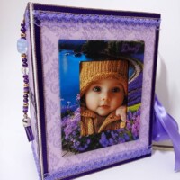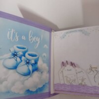 Un álbum pequeño lleno de frescura y delicadeza, inspirado en campos de lavanda junto al mar. Cada página es un pequeño tesoro para capturar los primeros recuerdos del bebé, desde sus ecografías hasta sus primeras fotos de cada mes.