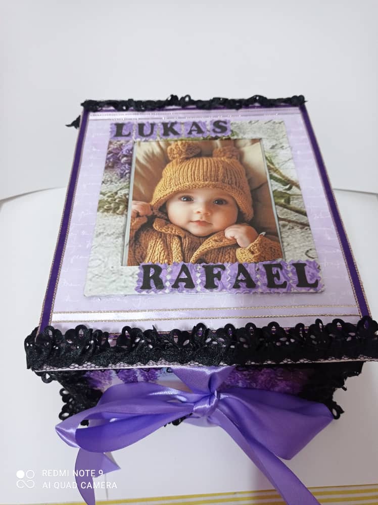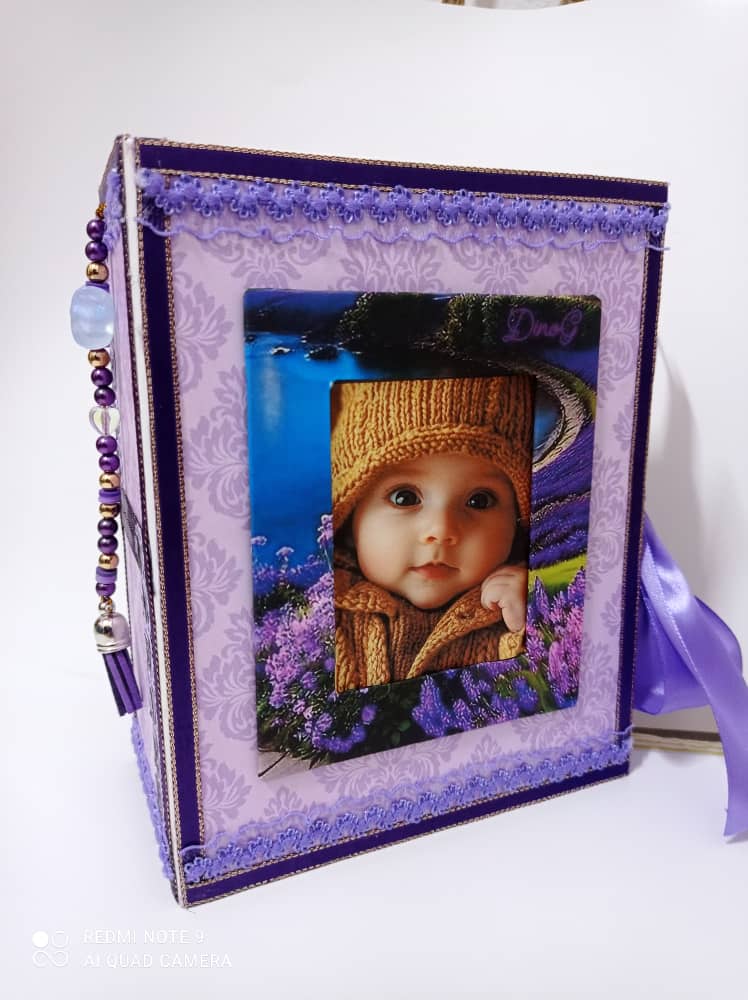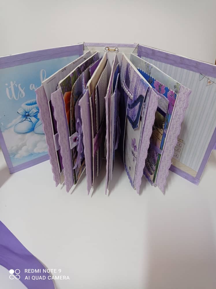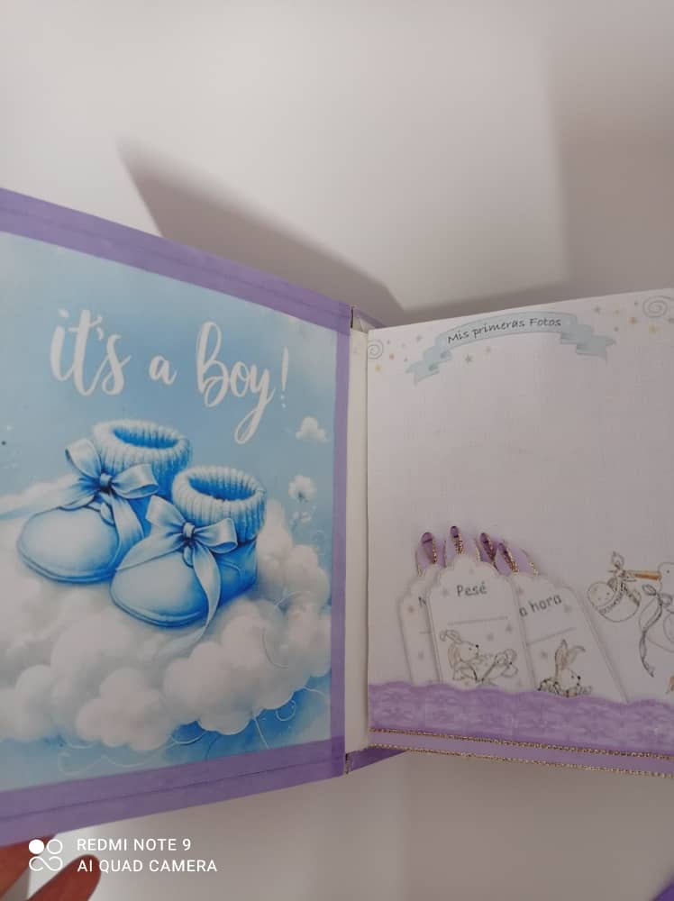 Un álbum pequeño lleno de frescura y delicadeza, inspirado en campos de lavanda junto al mar. Cada página es un pequeño tesoro para capturar los primeros recuerdos del bebé, desde sus ecografías hasta sus primeras fotos de cada mes.