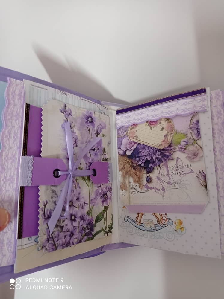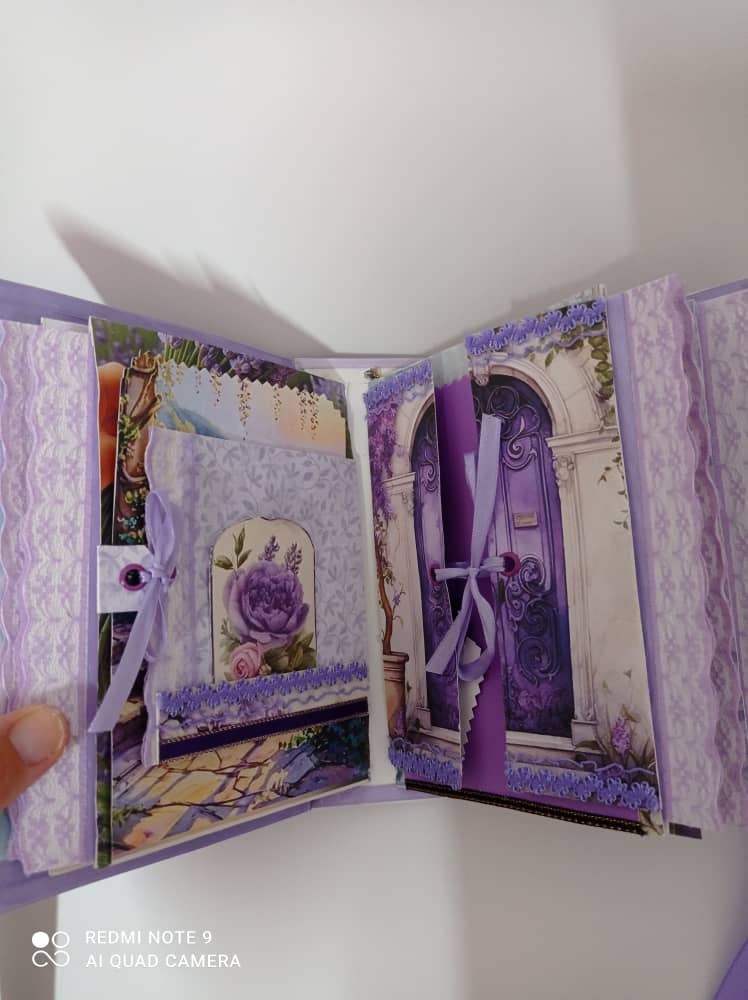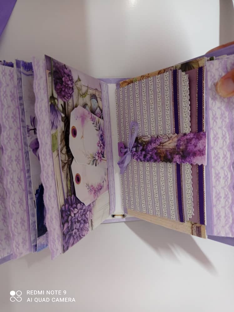Decoración: Flores de lavanda por todo el álbum, delicadas y armoniosas