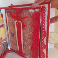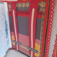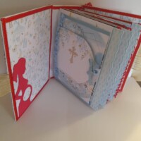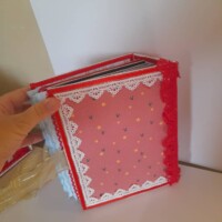 Caja a juego, decorada con los mismos colores y espacio para otra fotografía en la tapa.
