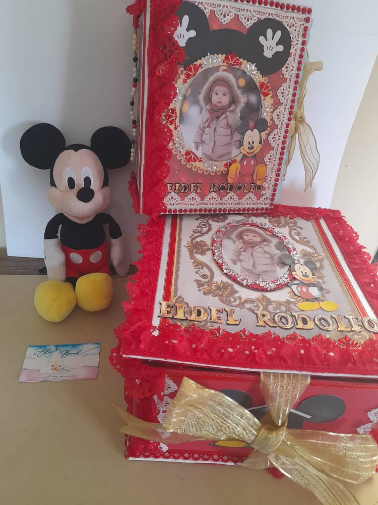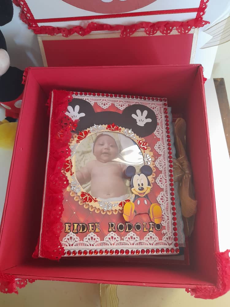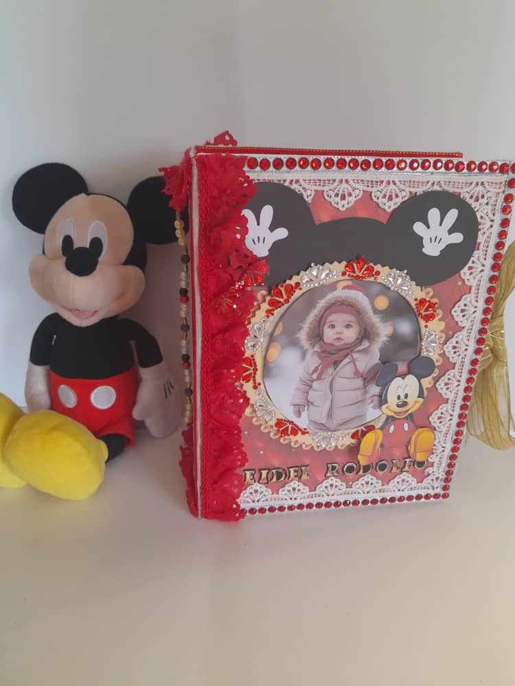 En este álbum late la alegría de la infancia, acompañada por la magia eterna de Mickey Mouse. Sus colores —rojo, negro y blanco— se entrelazan como un cuento vivo donde cada recuerdo brilla con simpatía y ternura. Aquí, cada página invita a sonreír, a guardar travesuras, primeras palabras y abrazos, bajo la mirada cómplice de Mickey, que nunca deja de soñar junto a los niños.