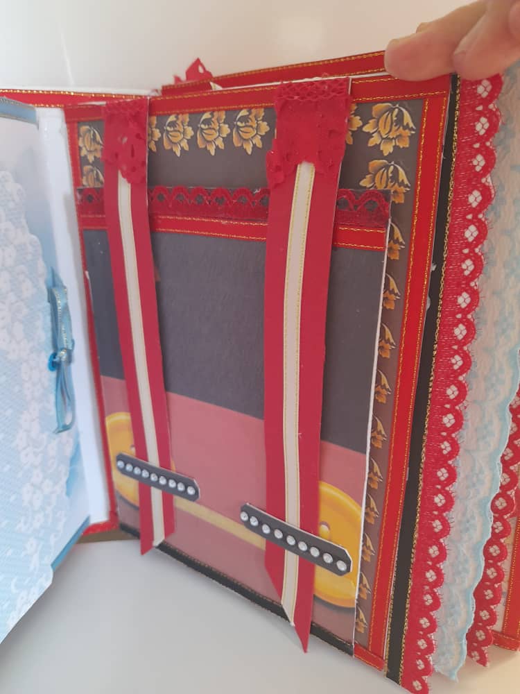 Caja a juego, decorada con los mismos colores y espacio para otra fotografía en la tapa.