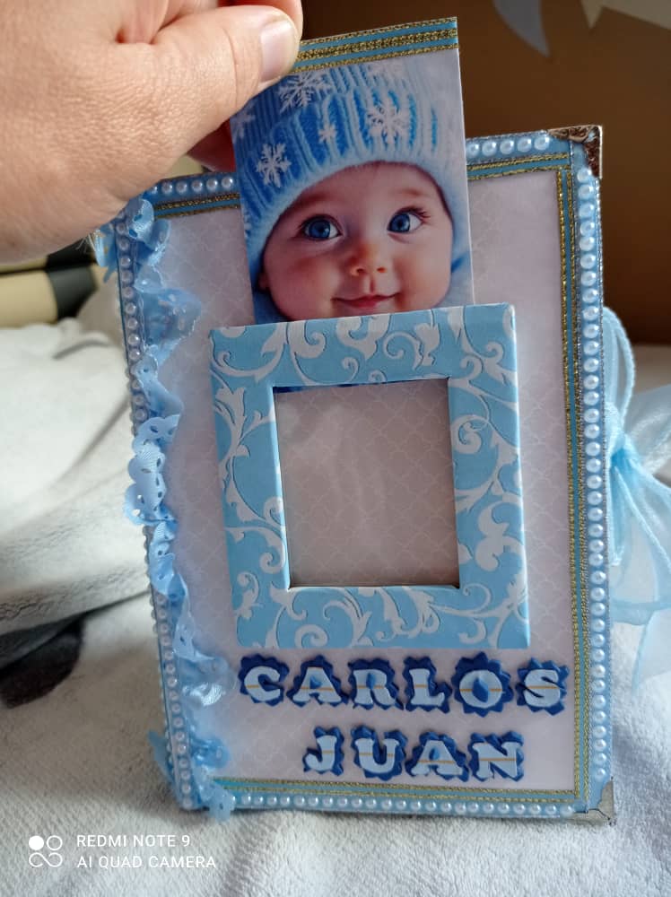 Sistema de fotos rectangular tipo marco, para colocar las fotos del bebé de manera sencilla.