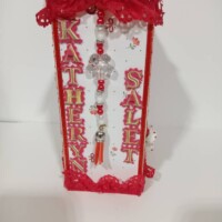 Flores en fuami blanco, con encajes delicados y pequeñas chispitas rojas.