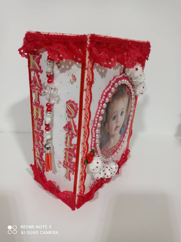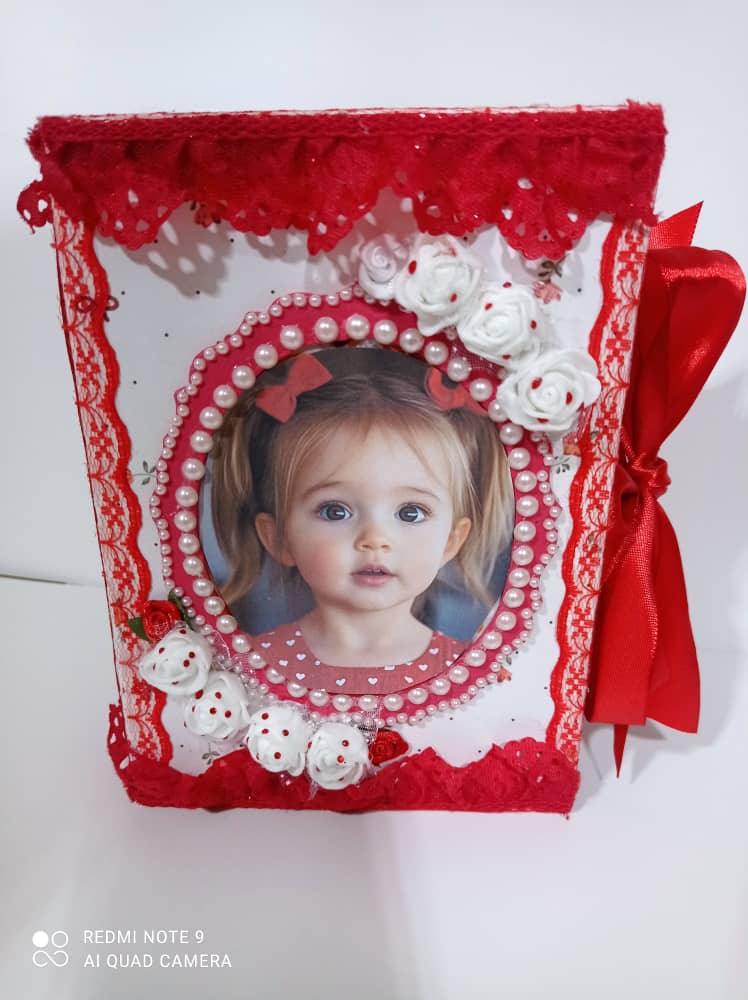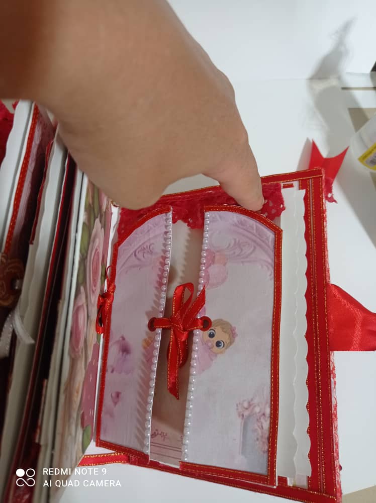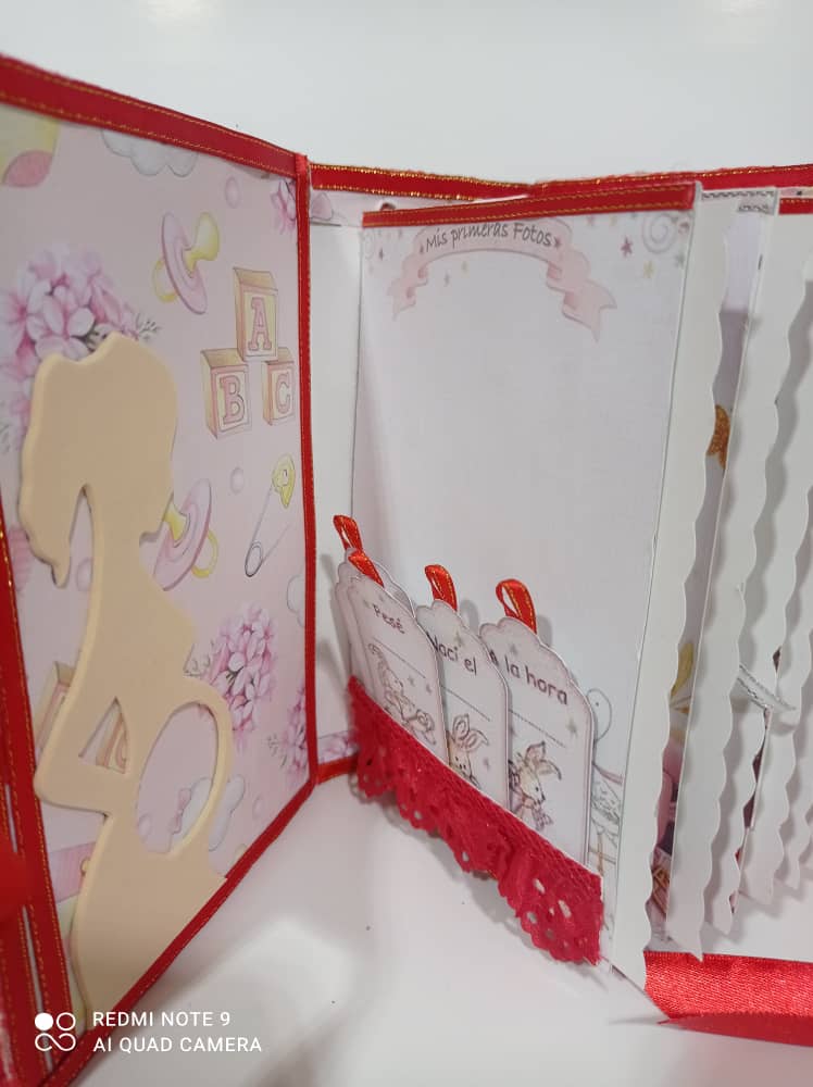 En un rincón lleno de corazones y pequeñas chispitas rojas, nace un álbum pequeñito que guarda los primeros recuerdos del bebé. Cada página es como un cuento donde los momentos más dulces se transforman en un tesoro lleno de amor.